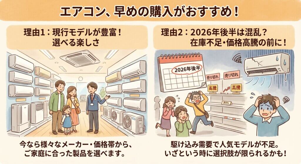 その「安いエアコン」が2027年以降はなくなります。シンプルな機能で十分な方こそ、今のうちに。
