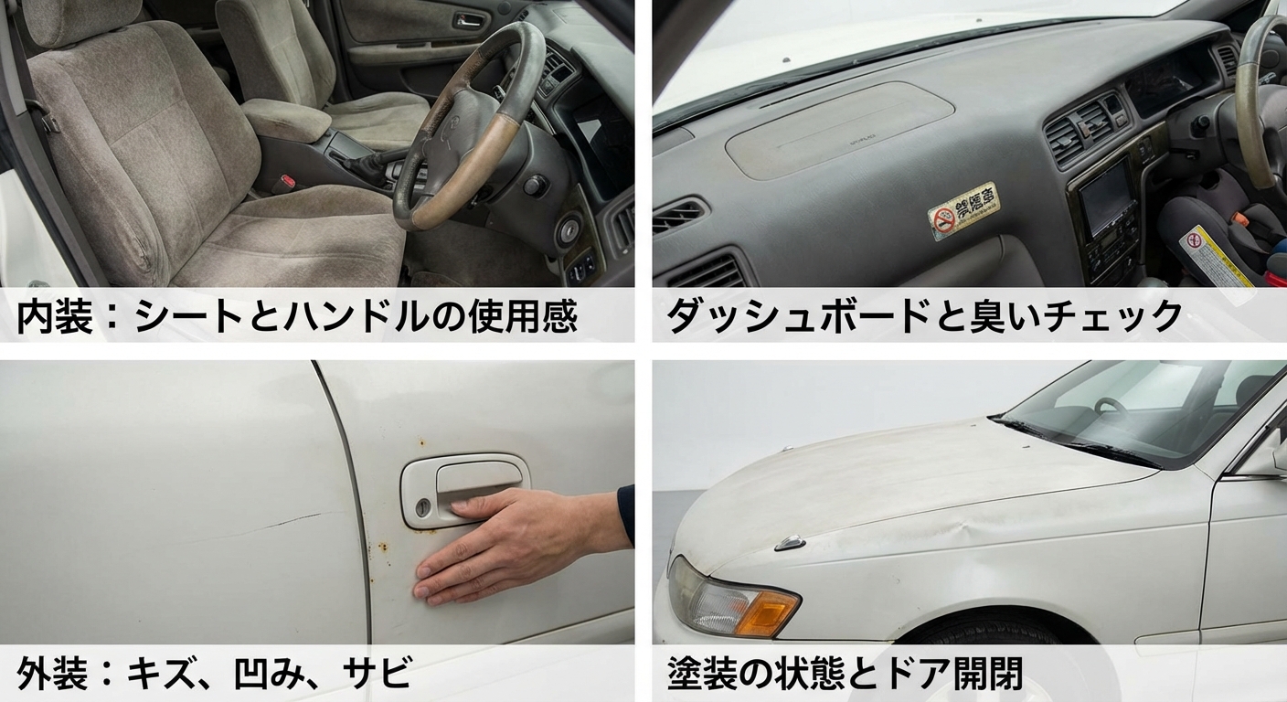 中古車選びで本当に見るべきなのは、走行距離という「数字」よりも、車そのものの「状態」です。ここでは、初めて中古車を買うお父さん・お母さんにもわかりやすいように、特に大事なチェックポイントを5つに絞ってお伝えします。