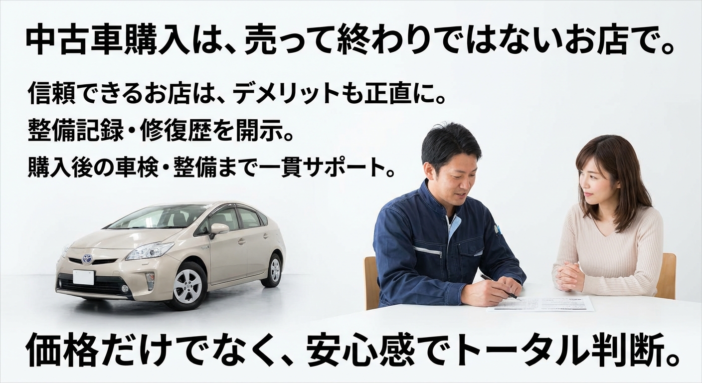 さらに、家族で乗る車だからこそ、安全装備や使い勝手にもこだわりたいところ。そして何より、購入後まで安心して任せられるお店を見つけることが、後悔しない中古車選びへの一番の近道です。